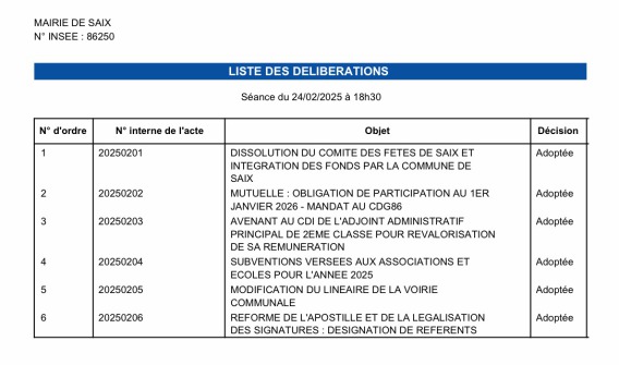 La municipalité est l'organe délibératif de la commune de SAIX. Ses attributions incluent les affaires locales et les budgets dans divers domaines, des tarifs de stationnement aux budgets pour l'éducation.