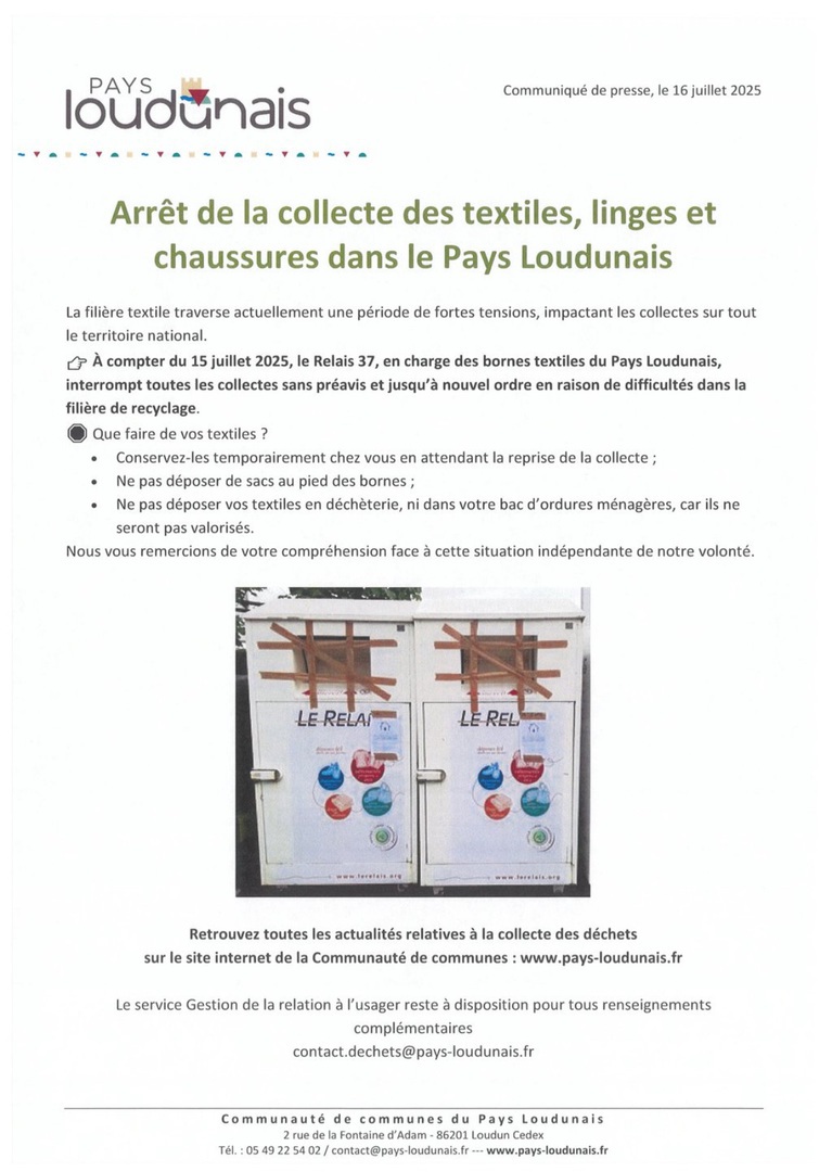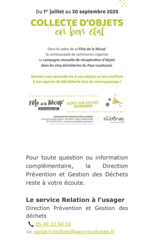 Si les usagers ont la moindre question, merci de bien vouloir prendre contact directement avec le Pôle Déchets au 05 49 22 54 02.
