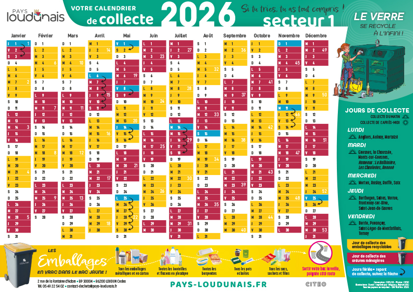 Cette activité est gérée par la Communauté de Communes du Pays Loudunais www.pays-loudunais.fr. Ramassage tous les 15 jours en alternance Bac jaune/bac grenat